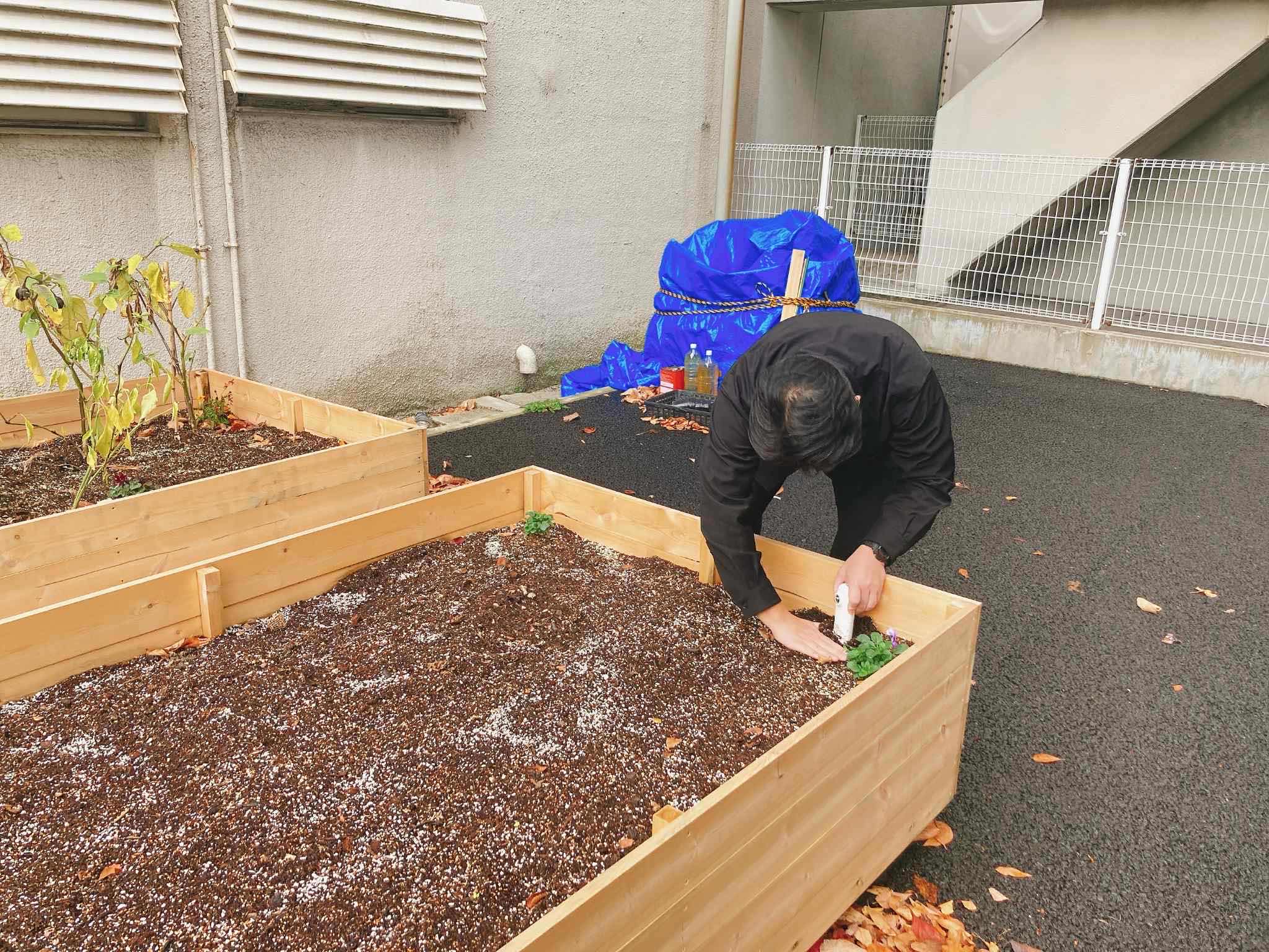 花町という地名にちなんで、お花も育てます